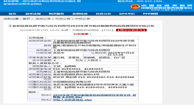 2020年度工業(yè)和信息化部節(jié)能和綜合利用司 工業(yè)節(jié)能診斷服務單位提供單位選聘